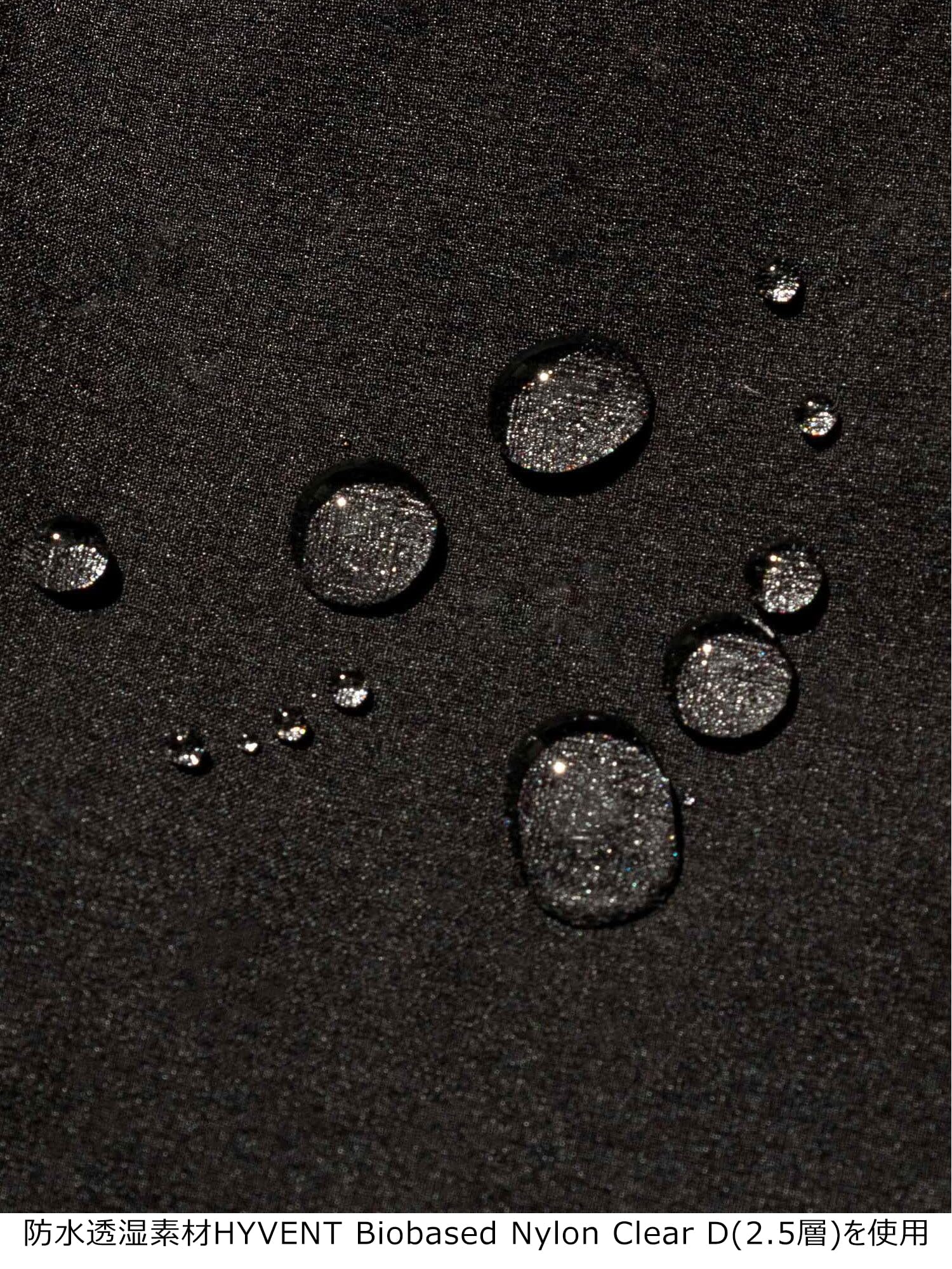 | 素材構成: | HYVENT Biobased Nylon Clear D(2.5層)(表側:ナイロン100%、裏側:ポリウレタンラミネーション) |