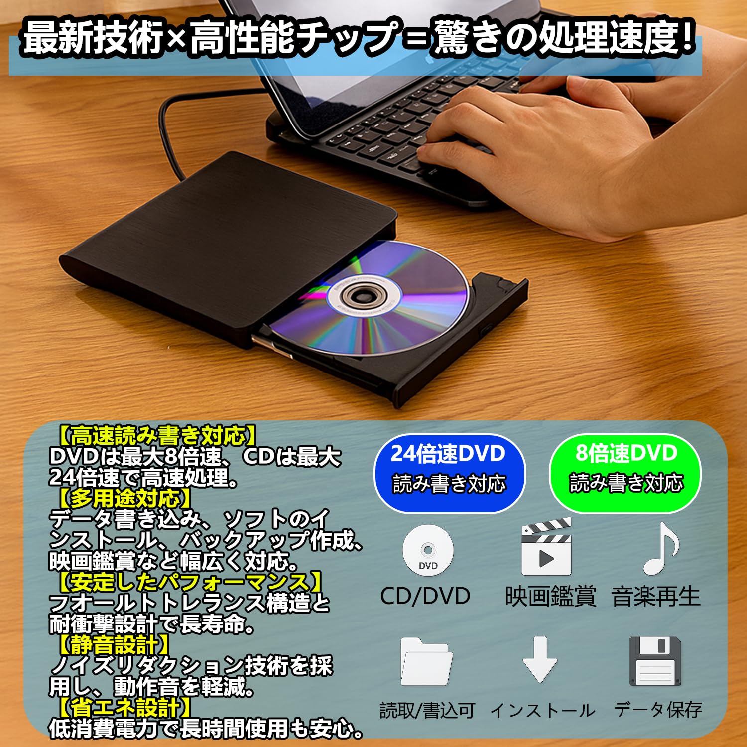 | 特徴: | 最新なインテリジェント技術、ユーニックな知能的インテリジェント記録技術、最速の書き込み技術、システム保護機能 |