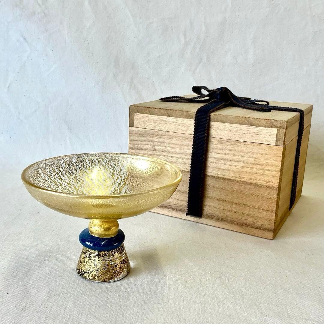 金箔 ガラス 盃 桐箱入 酒器 猪口 ぐい呑み 金 ガラス工芸 一点物