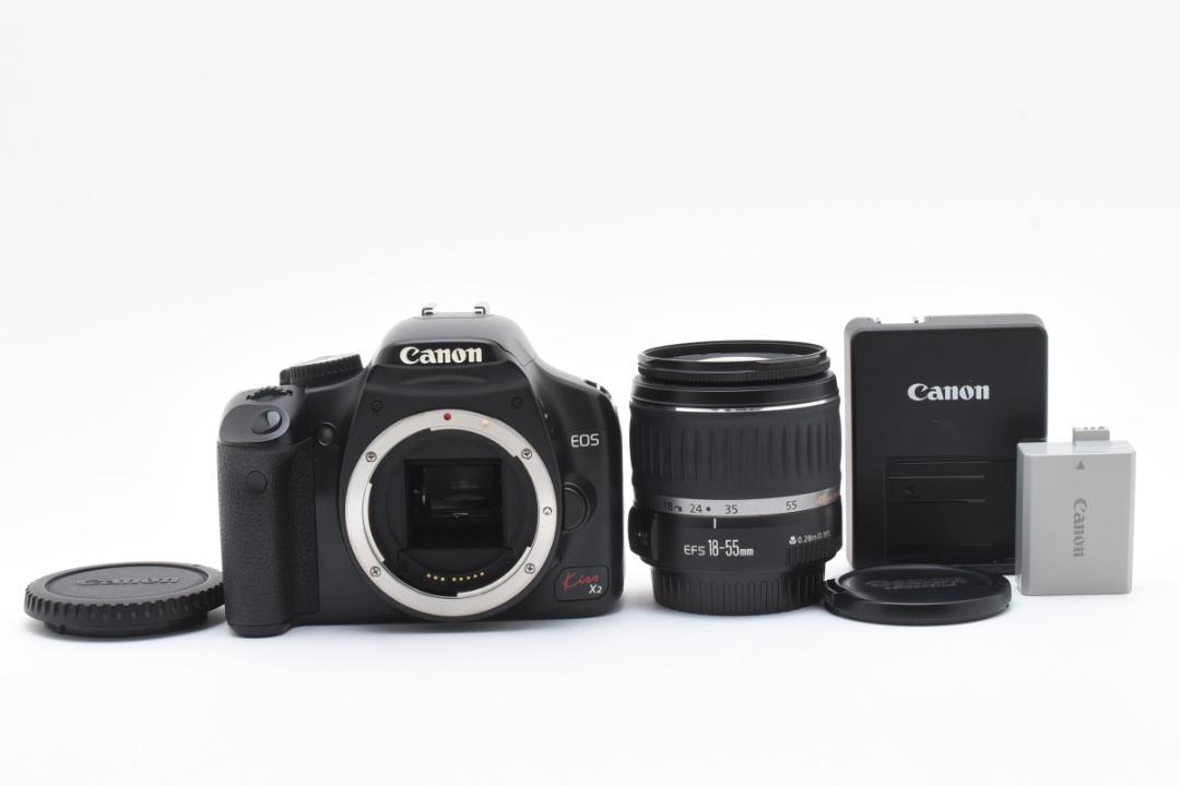 Canon EOS Kiss X2 レンズキット❤️ 初心者も安心⭐️一眼レフデビュー ⭐️オススメポイント⭐️ ●一眼レフなのに小型軽量でラクラク扱える♪ ●初心者でも扱いやすい操作性♪ Canon EOS Kiss X2は一眼レフ・エントリーモデルながら、1220万画素の高画質! とても高性能で、バランスの取れたカメラなので、多くのユーザーに支持されています⭐️ また、一眼レフなのに500mlペットボトルより軽く、とても軽量コンパクト! 女性ユーザーでも扱いやすさバツグン❤️ 持ち歩きしながらの撮影にも最適です♪ 初めて一眼を手にする方でも、カンタン操作でスグに使いこなせる優しい一眼レフです❤️ 大変人気の高い商品です♪ 送料無料! 即購入歓迎です! ======= ★コンディション★ 【外観】 経年のスレ等ありますが、 全体的に綺麗です。 多くの写真をアップしてますのでご覧ください。 【光学】 撮影に影響するカビや曇りなくクリアで綺麗です。 気持ちよくお使いいただけます。 【動作】 動作確認済み。 各部、動作好調で問題ありません。 安心してお使いいただけます。 他で先約済みとなりましたら、 早期に出品終了させていただきます。 お探しの方も多いと思いますが 一点のみのご紹介ですので、 是非この機会を逃さずご入手ください♪ ★アクセサリー・付属品★ アクセサリー・付属品は、 画像に写っている物全て付属します。 〜〜〜〜〜 ★8,000件以上のカメラ・レンズの取引実績 ★カメラ専門店でプロによる検品、動作確認済み! 安心してお買い物をお楽しみくださいませ。 ご購入後は、迅速・丁寧に発送させていただきます♪ (土・日・祝をはさむ場合、 月曜の発送となる場合がございます。) 〜〜〜〜〜〜〜〜〜 1671i88faa