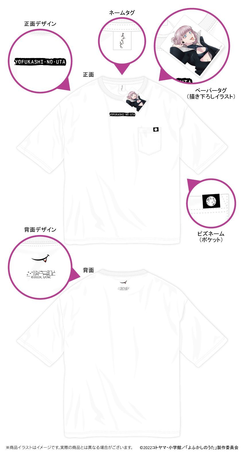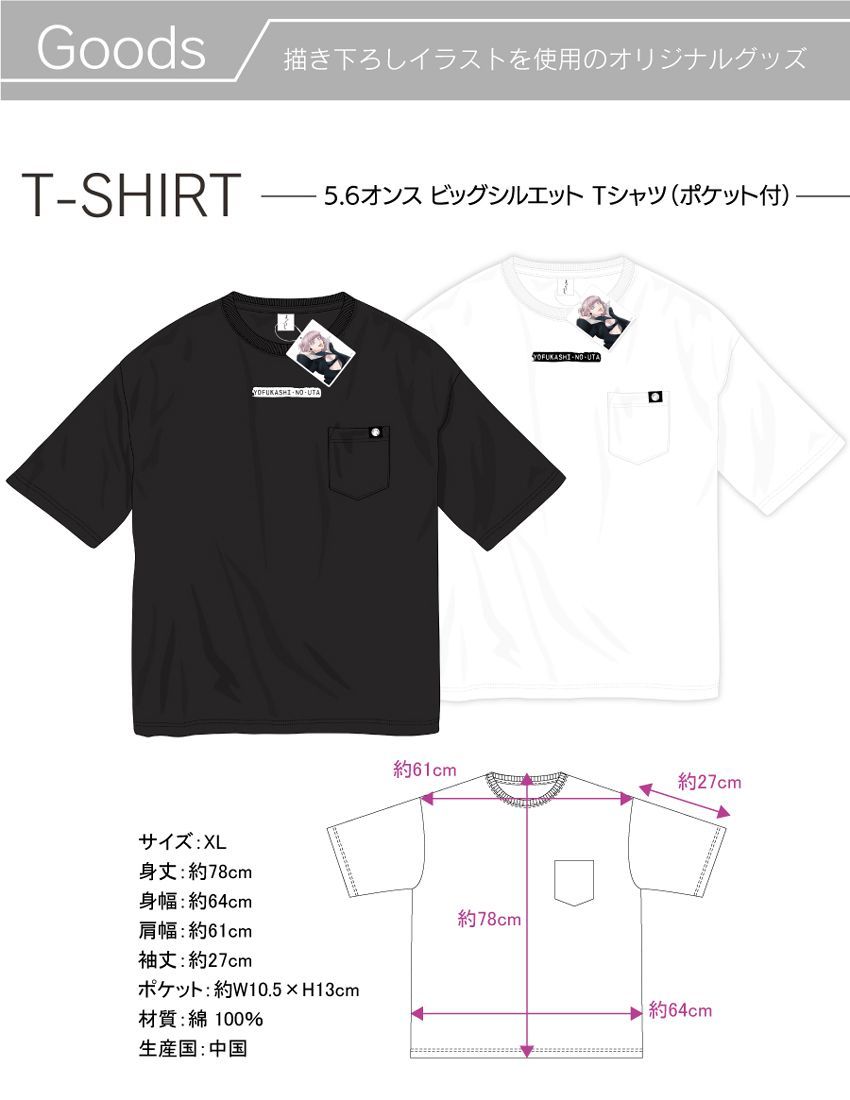 『よふかしのうた』 5.6オンス ビッグシルエット Tシャツ ポケット付 (白)