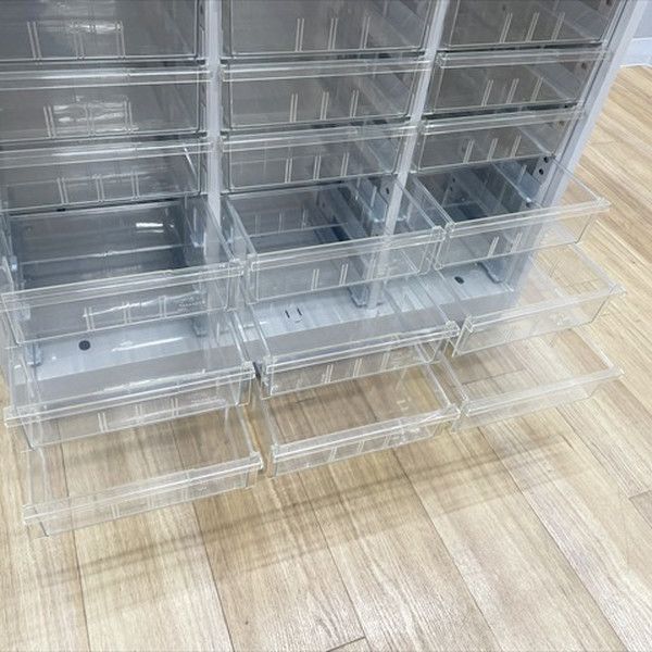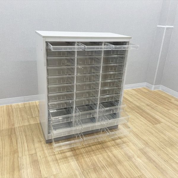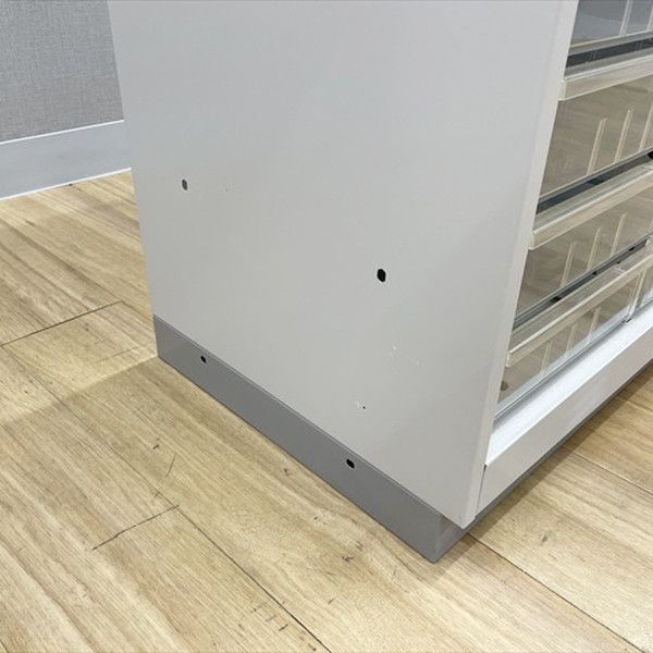 【商品番号】 CT-878168B 【商品説明】 ベース付 トレイ:浅型3枚 深型30枚 計33枚 A4サイズの書類を大量にしかも効率よく保管・分類できます。文房具等の小物の保管収納などにも便利です。 【商品型番/サイズ】 型番:HTM-109KAH-WE 幅900mm 奥行450mm 高さ1120mm 【カラー】 グレー系 ※当店では独自の技術により丁寧に清掃・洗浄を行っており、商品は全体的に清潔感のある仕上がりとなっております。 価格を抑えたコストパフォーマンスに優れたお品物ですが、あくまでも中古品のため、使用に伴う微細なキズやわずかな使用感がある商品もございます。 傷や汚れなどは写真にて掲載しておりますので、あくまでもリユースのお品にご理解のある方のみご購入ください。 【保証について】 リユース家具に限り8か月の保証がございます。 誤った使用による故障または損傷や純正パーツ以外の交換を行った際の故障(キャスター・カバーなど)の場合は保証いたしません。 【配送について】配送方法が未定となっている商品は当社指定の運送会社で配送されます。 配送:月曜~金曜日時間:9:00~17:00 ※時間指定はできませんが、配送日指定(土・日曜除く)は可能です。 商品の受渡し:1階軒先 ※再配達は行っておりません。商品は1回でお受け取り出来るようにご準備ください。 ※アートセッティングデリバリーでの配送は追加の送料がかかります。 【配送料金について】 個人宅へ配送の場合、エリアによって別途送料が加算されます。 システム上個別送料の設定が出来ないため、個人宅配送の場合はお手数ですが事前にお問合せ下さい。 【商品を引取りご希望の場合】 下記場所にて引取りをご希望の方は、引取りに関しての詳細はご注文前にコメントお願いいたします。 (事前に問い合わせいただいた方のみご対応させていただきます。) ~引取り可能時間~ 月曜~金曜 9:00~17:00 ※12:00~13:07の間は対応できません。 引取場所:千葉県市川市 トレイキャビネット 書庫 書類 収納 書類整理棚 小物整理 Itoki 3列11段