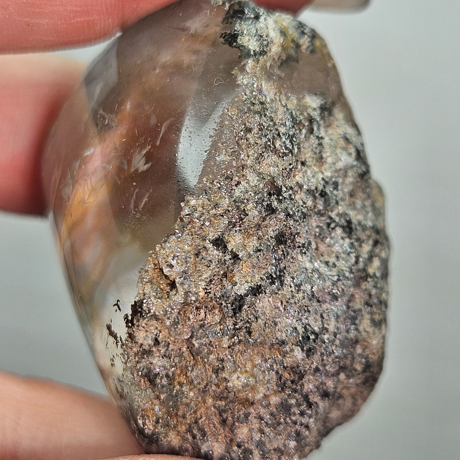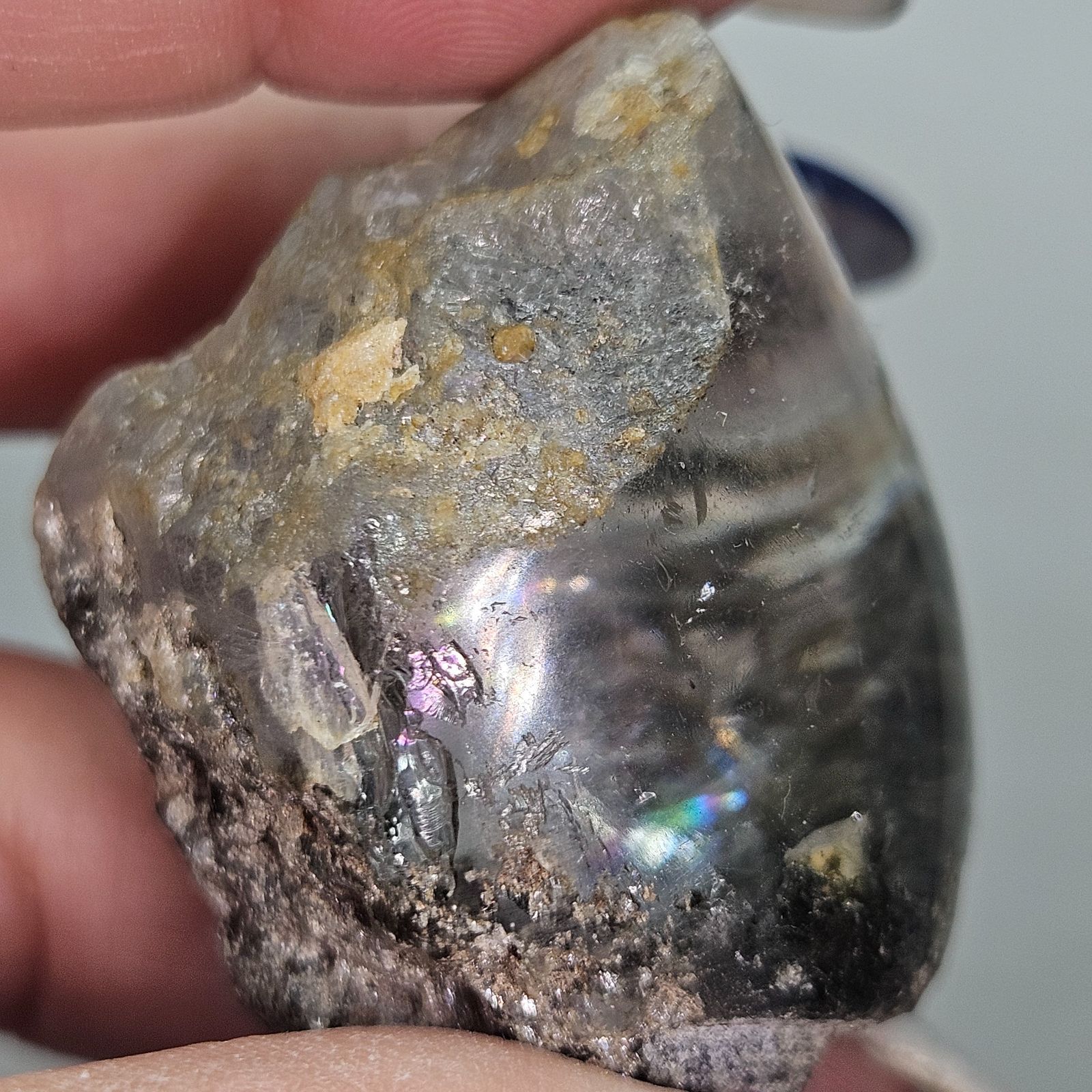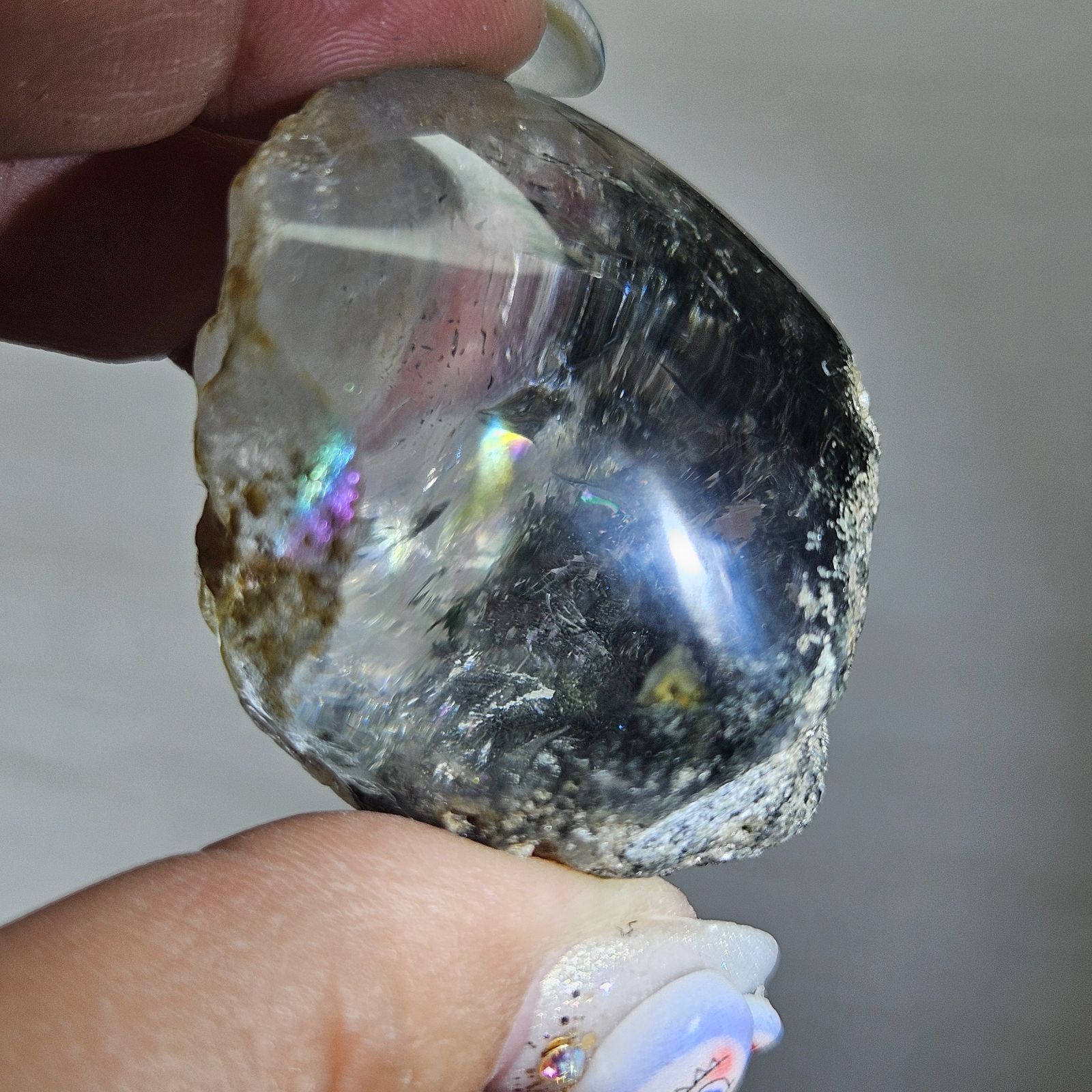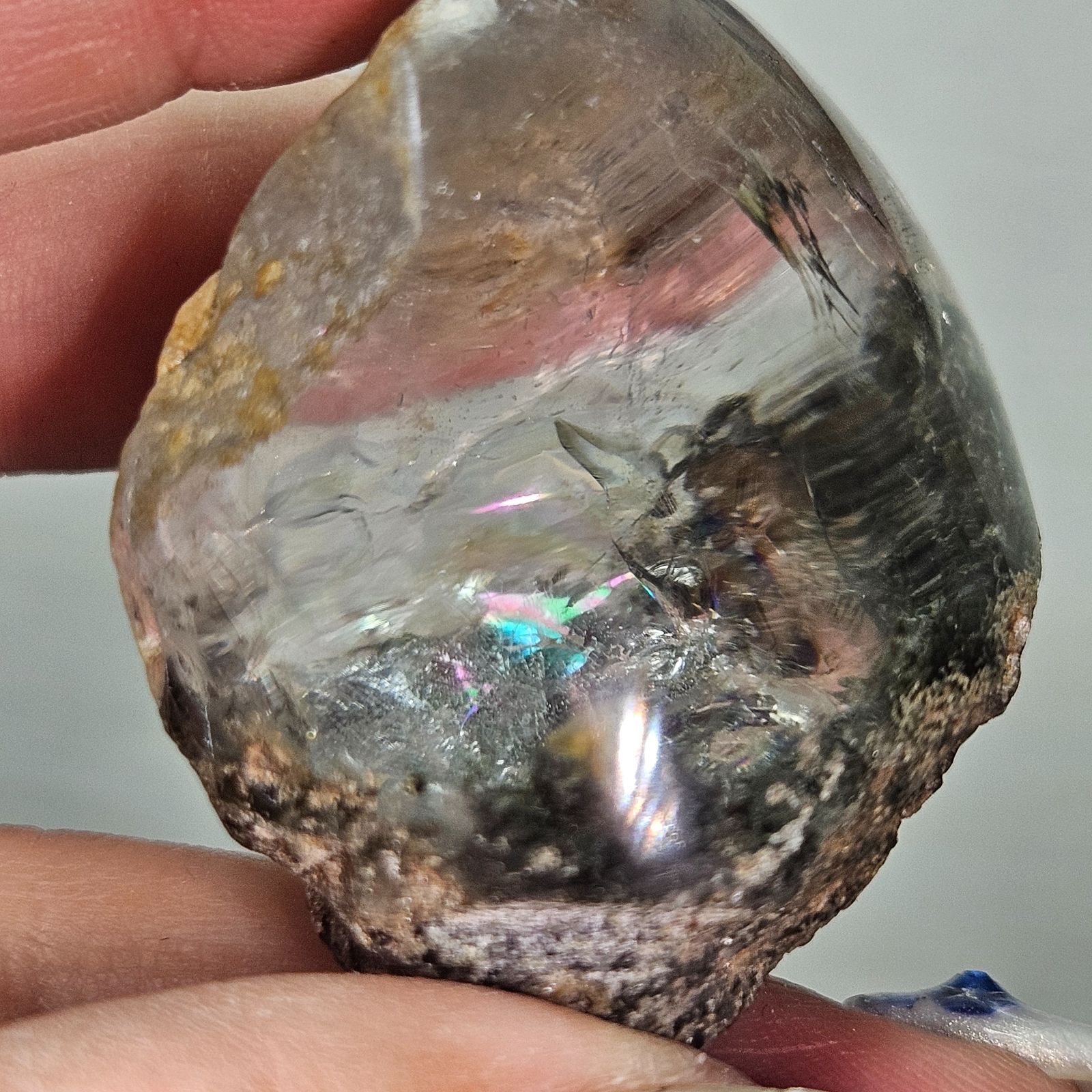 虹入りガーデンクォーツは、浄化、癒し、金運、対人関係の改善、直感力向上などの効果があるとされています。水晶の持つ万能な浄化・癒し効果に、虹の開運パワーとガーデンクォーツの安定・成長力が加わり、全体的な運気を引き上げ、ネガティブなエネルギーから身を守るお守りとしても優れています。