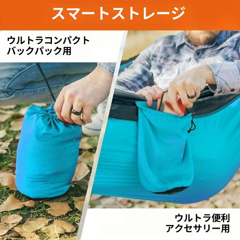 軽量で持ち運びやすいハンモックは、アウトドア好きのあなたにぴったり。キャンプ、旅行、庭でのリラックスタイムに、手軽に設置して快適な時間を過ごせます。