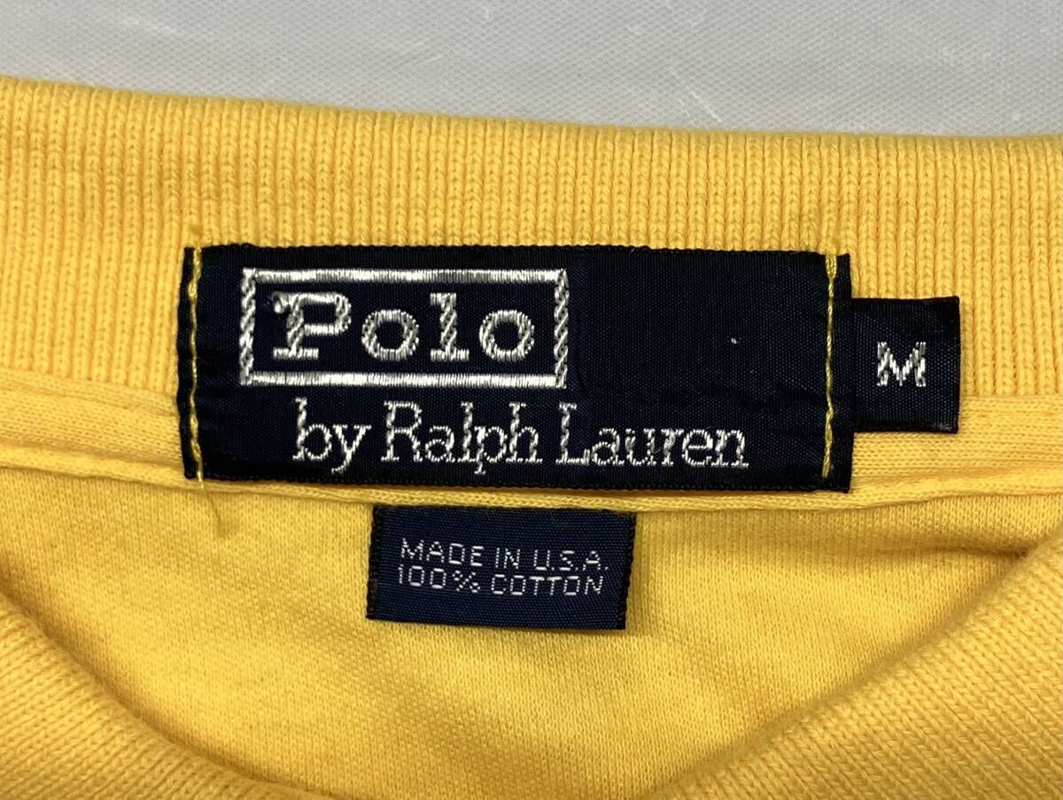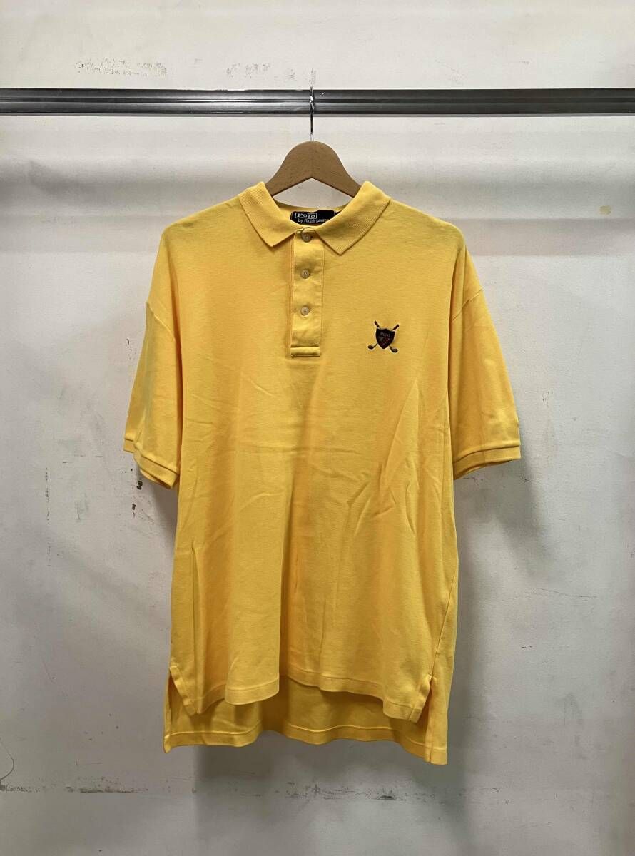 POLO RALPH LAUREN ポロラルフローレン 半袖ポロシャツ 90S ワンポイント GOLF アメリカンカジュアル USA製 イエロー サイズM 汚れ 破れ