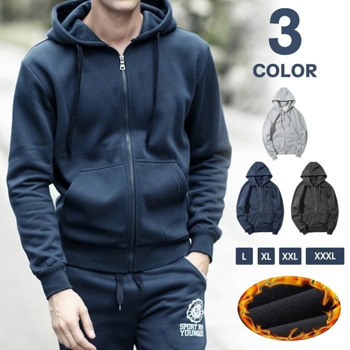 パーカー メンズ 無地 ジップアップ 長袖 フード 秋冬 春 おしゃれ スウェット 部屋着 カジュアル トップス 春服 メンズファッション【hjfs53】
