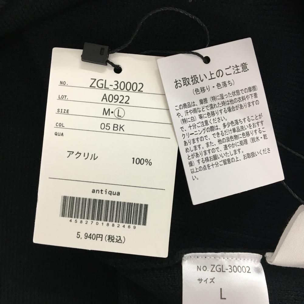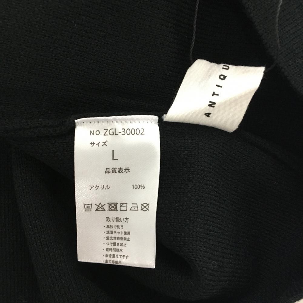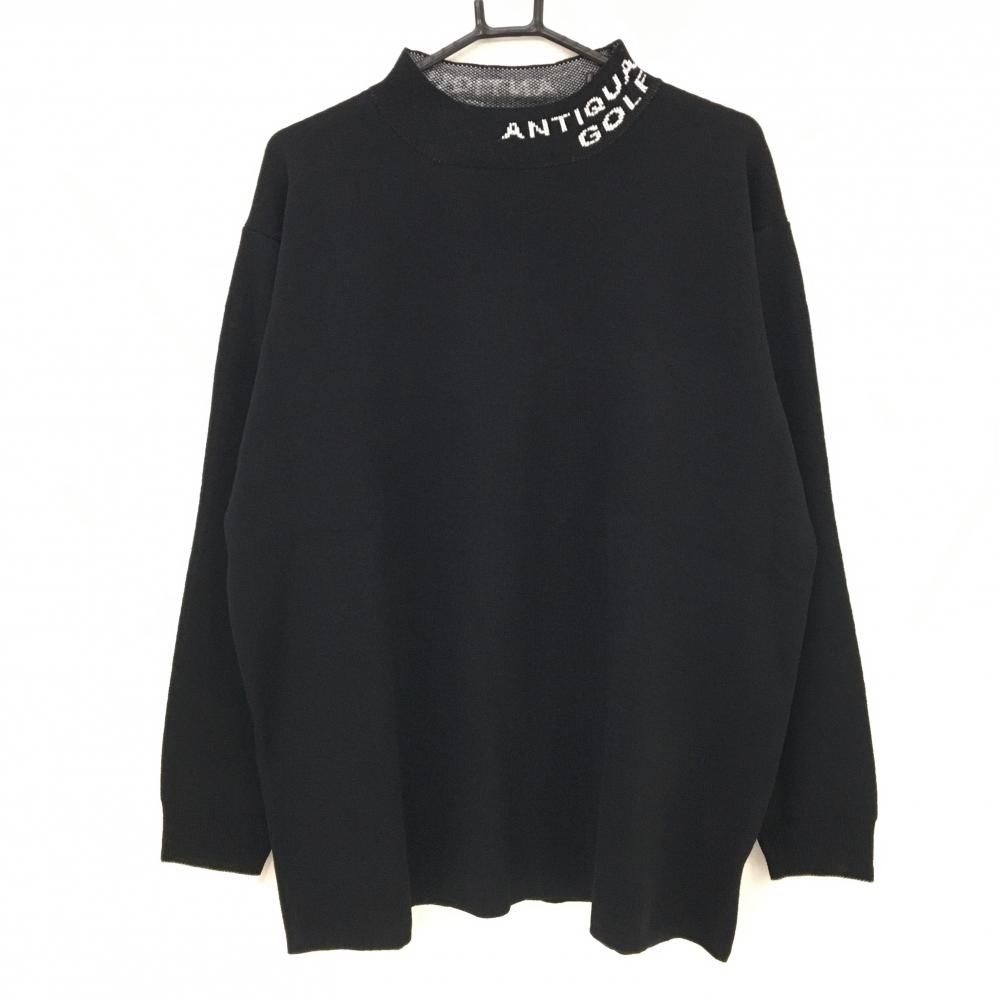 【新品】アンティカゴルフ ハイネックセーター 黒×白 ネックロゴ ニット メンズ L ゴルフウェア ANTIQUA GOLF