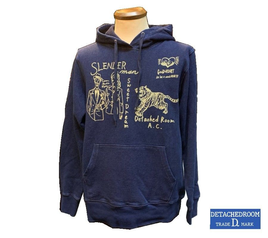 ショップオリジナル デタッチドルーム インディゴ染め パーカ プルオーバー スレンダーマン