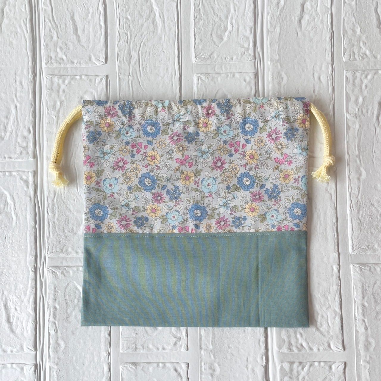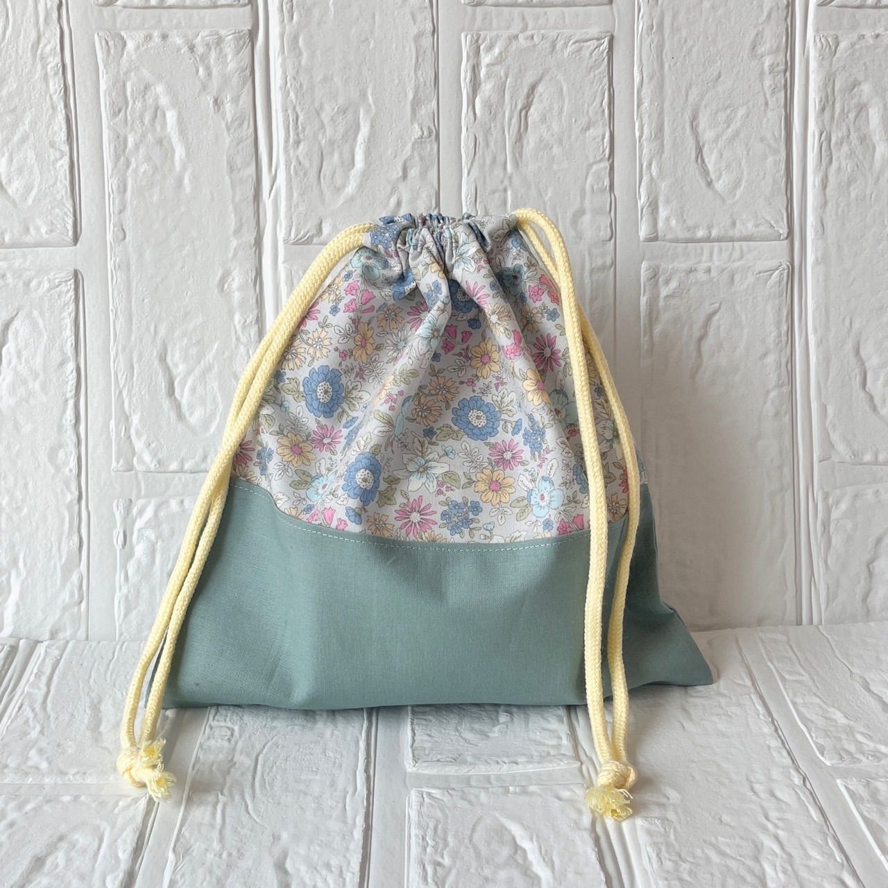 ハンドメイド C185 くすみ花柄 23×23 給食袋 コップ袋 巾着袋 入学 入園