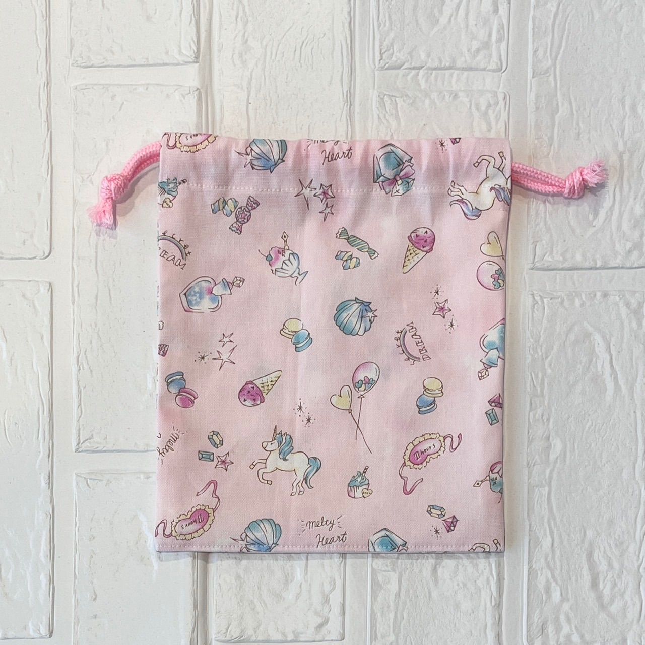 ハンドメイド C164 ユニコーン ピンク 20×18 給食袋 コップ袋 巾着袋 入学 入園