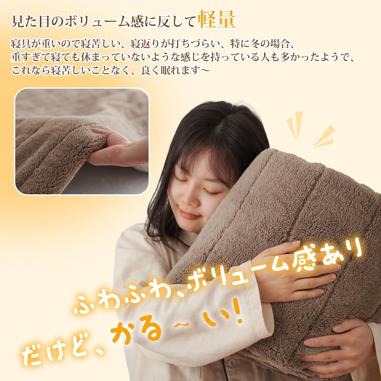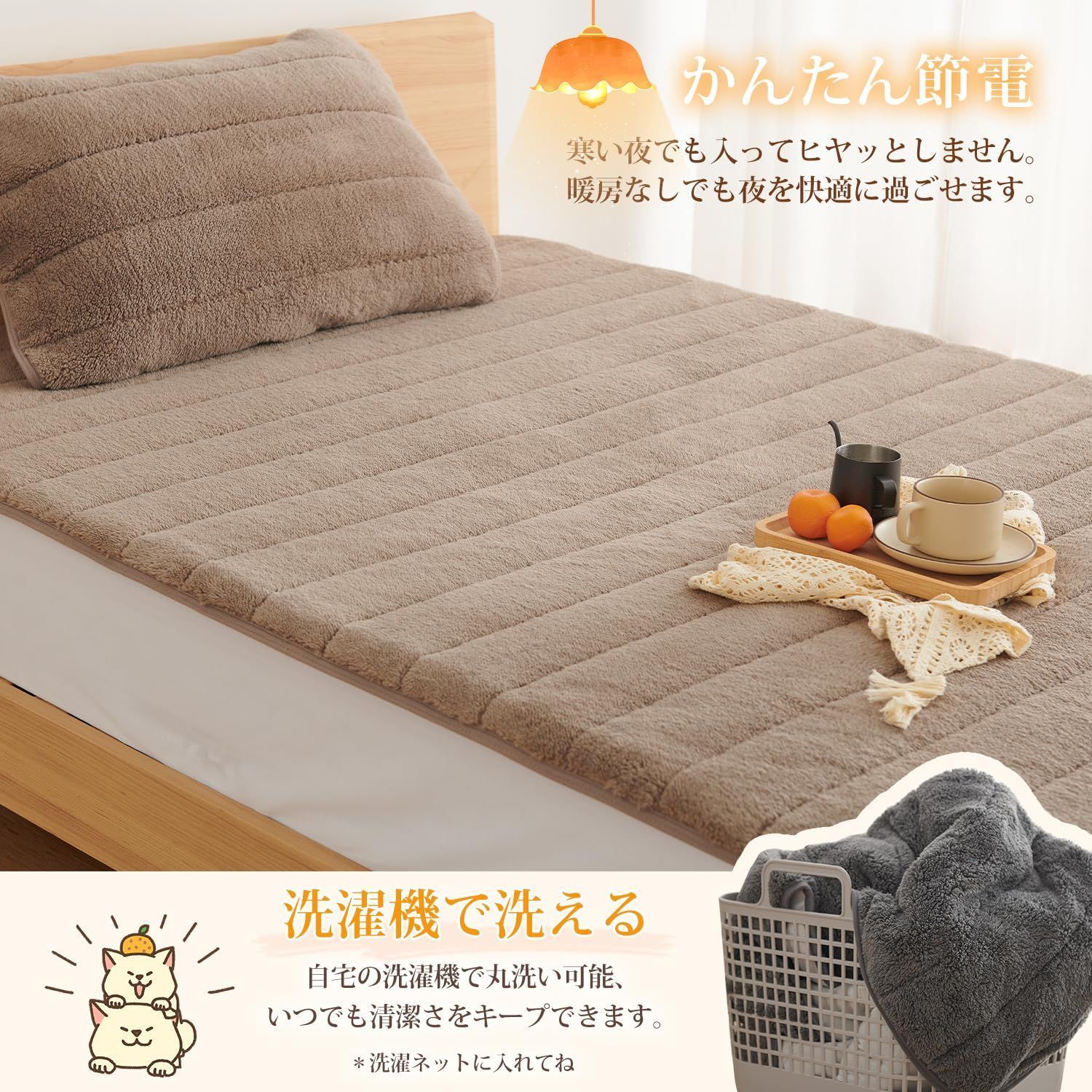 ご覧いただきありがとうございます。 当店では他サイトにも商品を販売しているため まれに売り切れや取り寄せ中となる場合がありますがご了承ください。 また極力在庫切れを防ぐため数量は1とさせていただいておりますが、複数ある場合もございます。 複数ご検討の場合は質問よりお問い合わせください。 クモリ(Kumori) 敷きパッド あったか 冬 もこもこ マイクロファイバー ふんわり ベッドパッド 洗える 敷き毛布 TEIJIN(帝人)中綿使用 抗菌 防臭 丸洗いOK 静電気防止 敷パッド (クイーン・160X200cm グレージュ) 【商品情報】サイズ-クイーン・160X200cm 素材-ポリエステル100% 仕様-四隅ズレ防止ゴムバンド付き 産地-中国 「ボリューム感たっぷりで暖かい」繊維の細かい糸の束からなるこのパッドはふっくらとしていて、身体から発した暖かい空気をその場に留め、暖かい状態を長くキープしてくれます。柔らかくて優しい肌触りを持っており、寒い季節でも一晩中ぐっすり眠れます。 「TEIJIN中綿使用」中綿はパッドのクッション性と吸水性をアップさせています。寝汗をぐんぐんかいてもパッドがすばやく吸収し、発散してくれますので、寝つきが悪くなる心配がありません。 「なんと軽い」見た目のボリューム感やふわふわ感に反して軽いです。冬用のずっしりと重たい寝具は寝苦しかったり、身体がなんとなく休まっていないような感覚を持つ方々にぜひおすすめ! 「丸洗いok」自宅の洗濯機で丸洗いができ、いつでも清潔さをキープできます。毛足が長く、汚れが少し溜まりやすいのですが、すぐに洗えるのでご安心を。 ◆冬に大活躍できるあったか敷きパッド◆ ・高密度で、シルクのような細い超極細繊維からなっているこのパッドは、ふわふわ、なめらかな肌触りを持つ上に、熱を逃がさず、保温性が抜群です。 ・パッドは吸湿・発熱性にも優れており、寒い夜でも暖房入れずに一晩中暖かく熟睡できます。 ・静電気減軽加工あり、洗濯機で丸洗えます。TEIJIN(帝人)中綿使用、抗菌・防臭加工を施しており、お子様も安安全にお使いいただけます。 ◆Kumori・品質◆ 万が一商品に不具合(初期不良など)がある場合は、お気軽に当店(cs@kumori.co.jp)までにご連絡ください。 最後までご確認頂き誠にありがとうございました。 上