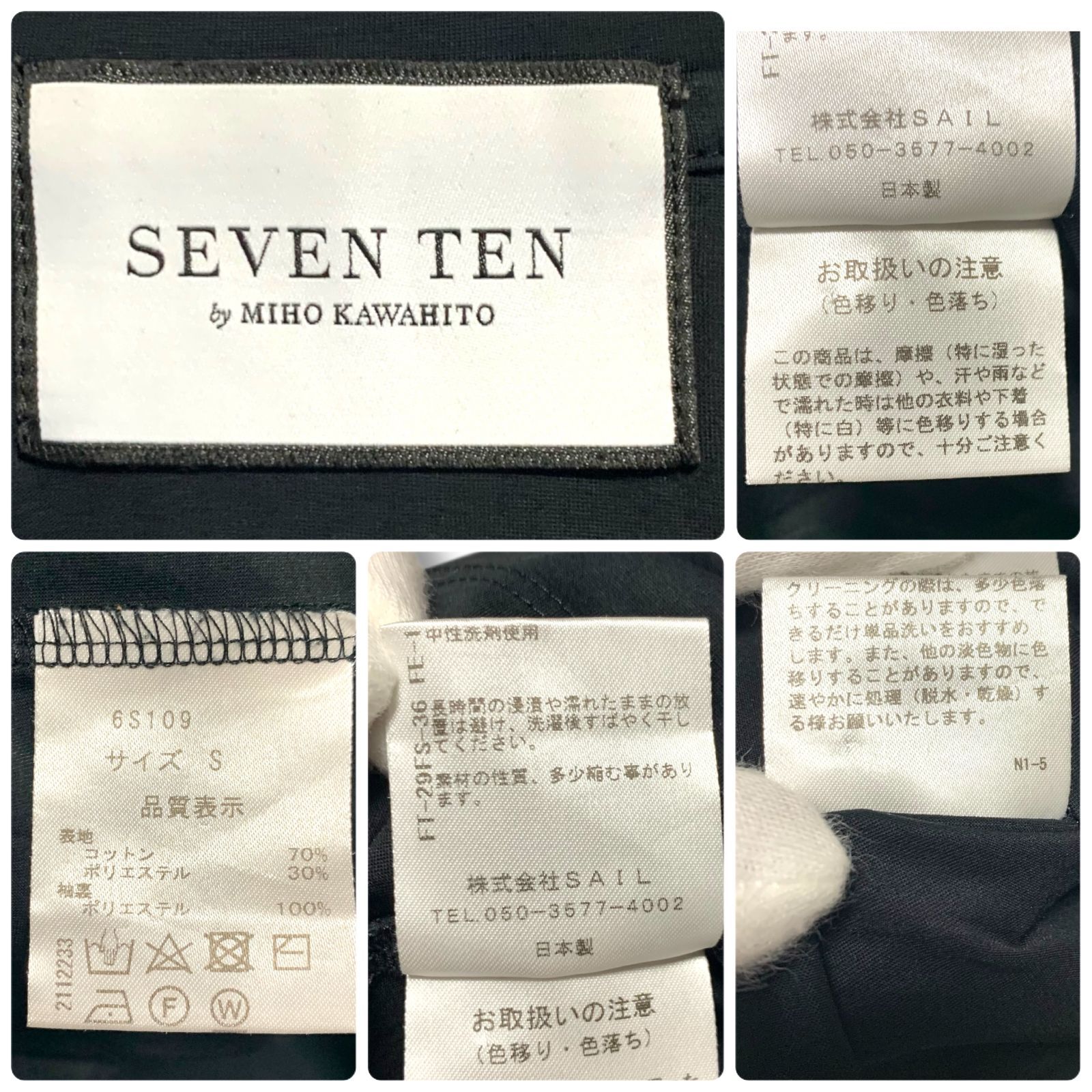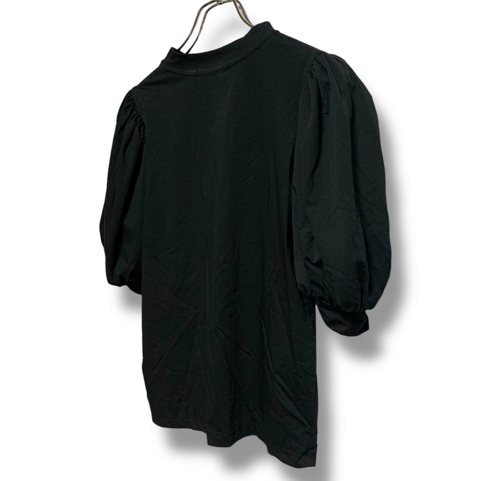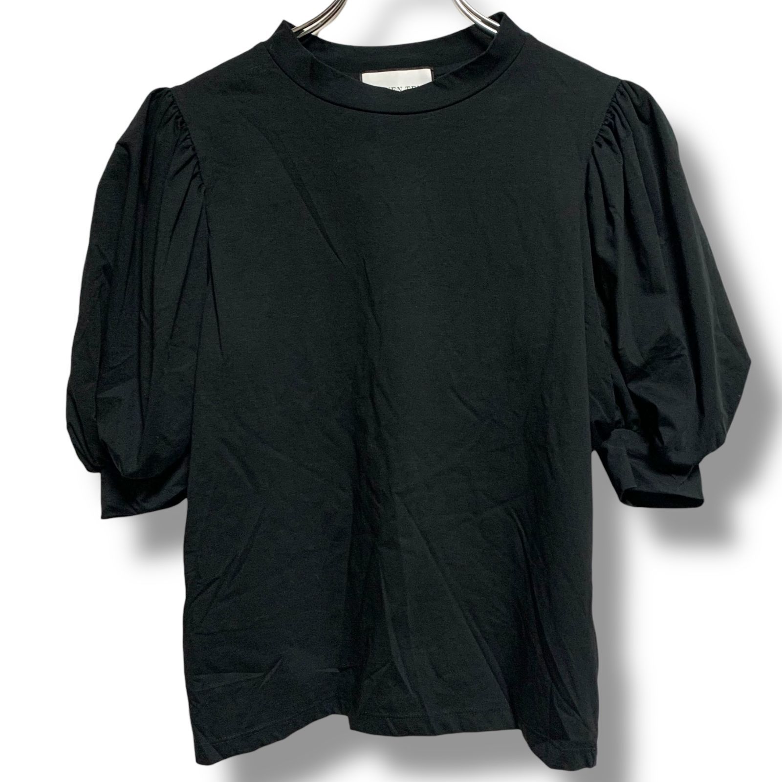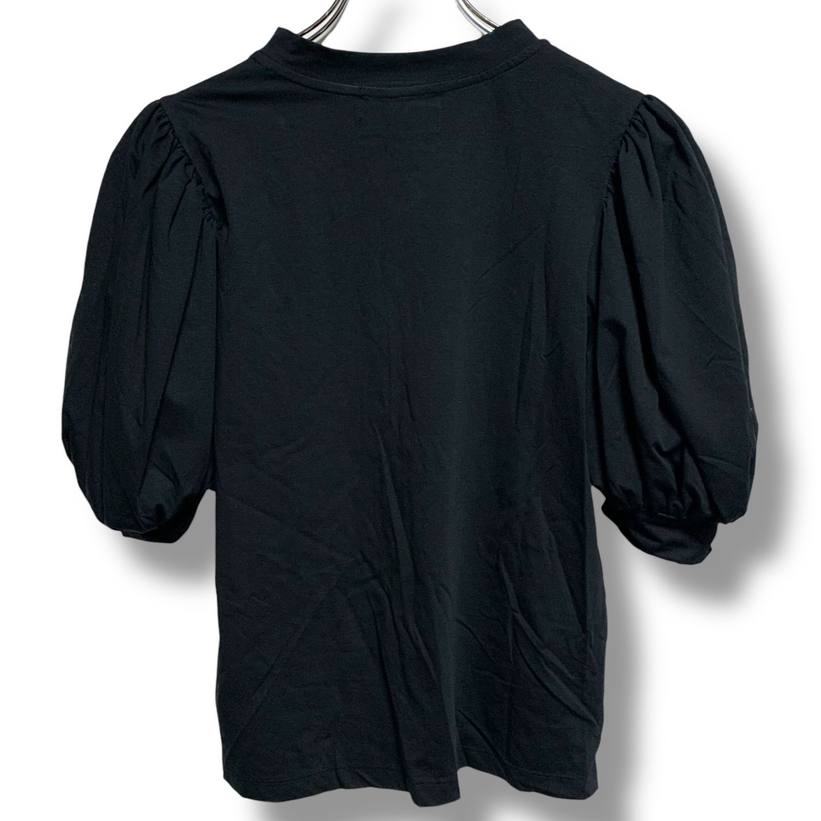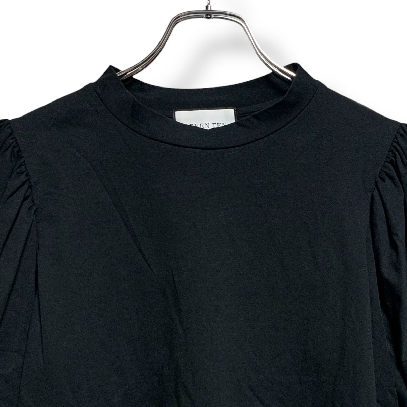 SEVEN TEN by MIHO KAWAHITO セブンテン ブラック パフスリーブブラウス 半袖 コットン70% 日本製 Sサイズ 光沢素材 ラウンドネック エレガント レディース 969H