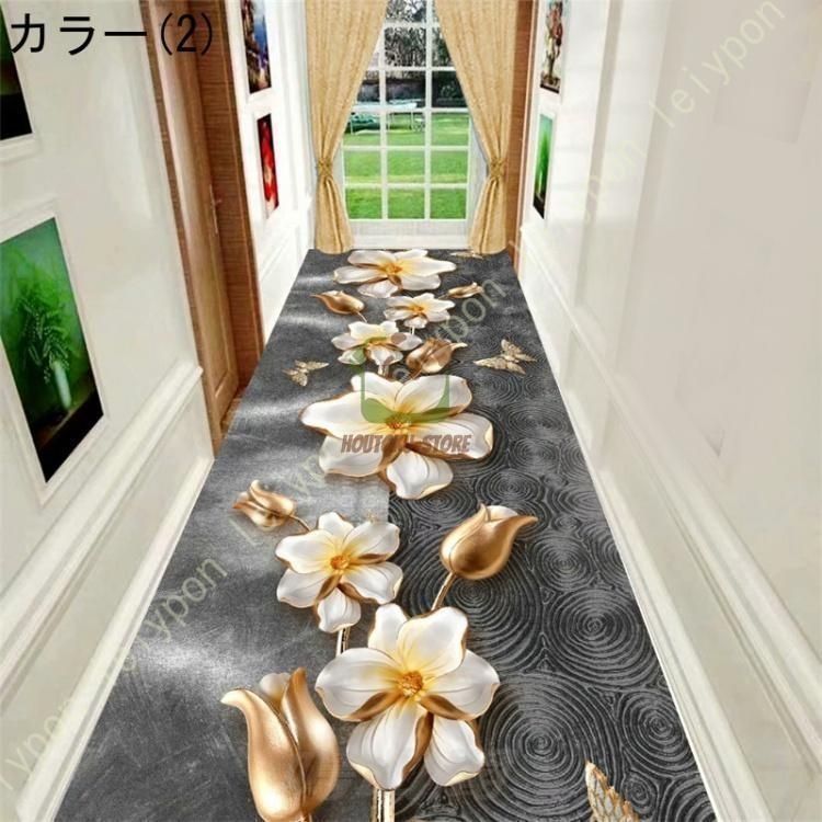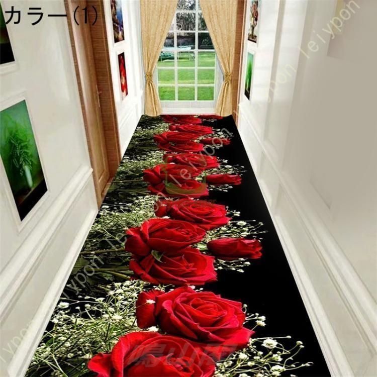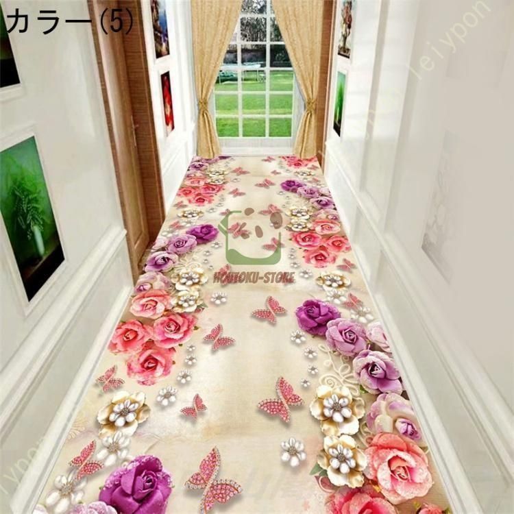 廊下マット 防音 廊下 マット 滑り止め ロングカーペット 廊下敷き 廊下用カーペット キッチンマット 花柄 春夏秋冬 騒音対策 耐磨耗性 おWP今だけ特価109