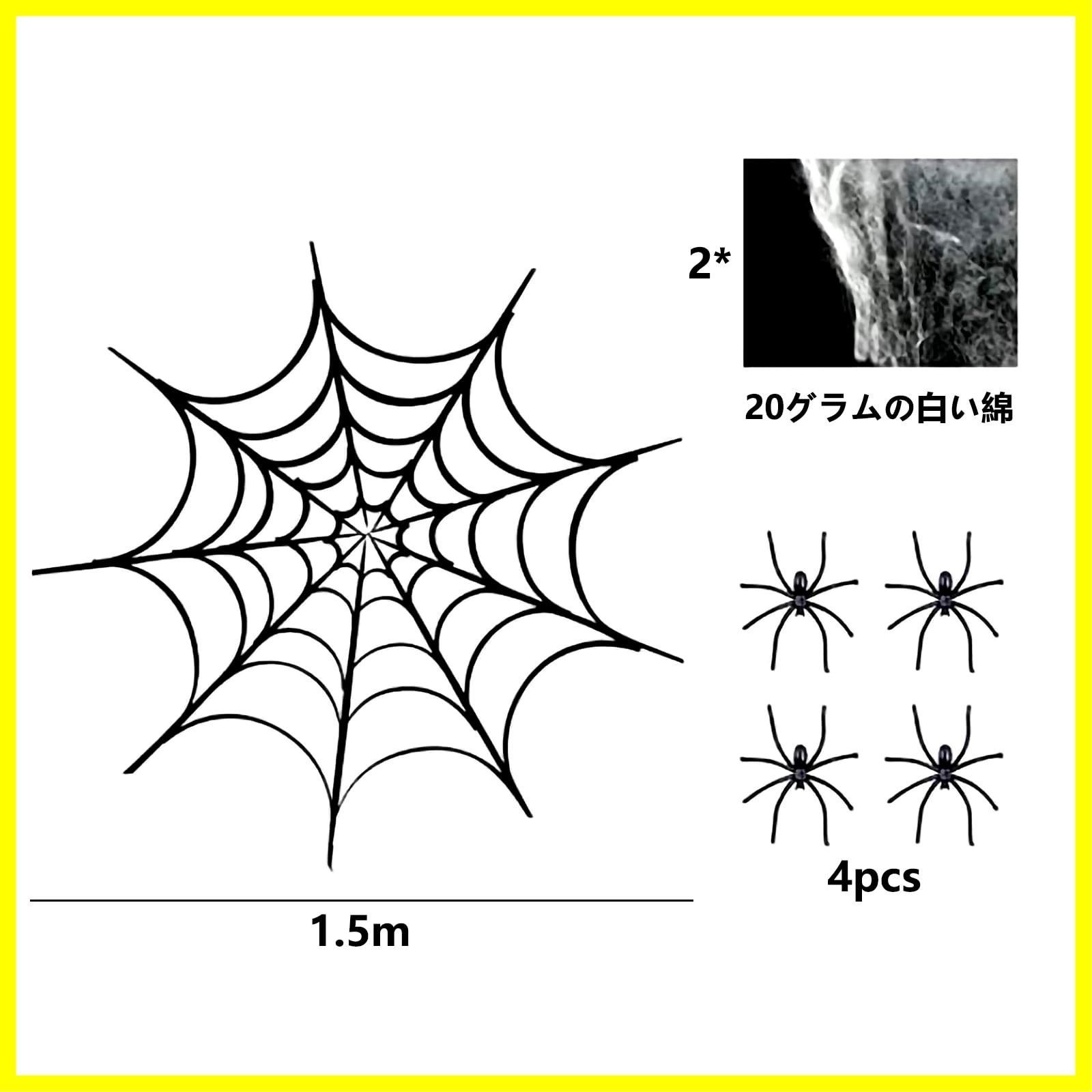 ハロウィン 飾りクモの巣7点セット 直径1.5m蜘蛛の巣 スパイダーウェブ お化け屋敷 蜘蛛 ネット 飾りつけ ハロウィン パーティー 雰囲気満点 学園祭 お店 お化け屋敷 デコレーション 道具 家庭用 店舗 飾り 装飾品 (クモ