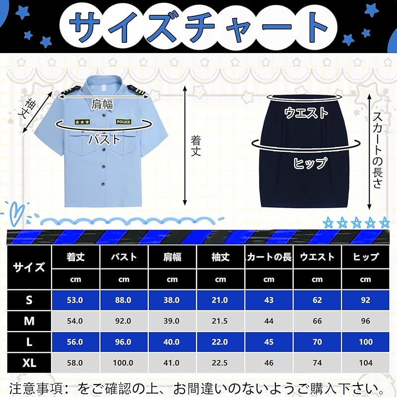 Arigatooメルカリショップをご覧いただきありがとうございます。 は全国一律無料となっております。 以下商品説明となります。 【商品概要】 color:ブルー size:XL: 【定番のミニスカポリスコスチューム】キュートでセクシーなミニスカポリス風コスプレです。ミニスカポリスはハロウィンコスプレの大定番。可愛いミニスカポリスになりきりましょう。 セット内容:【スカートタイプ】5点セット内容:トップス、スカート、ネクタイ、帽子、肩紐【ワンピースタイプ】4点セット内容:ワンピース1着、帽子、ベルト、ネクタイ。【本格的なつくり 】肌触り、着心地の良い綿を採用しており、質感、縫製、細部にまでこだわって作られています。 【ポリス帽子付き】本格派デザインのポリスハットがセットに。センター部分にはキラリと輝くエンブレム、少しかっちりとしたデザインの帽子です。ポリスハットをかぶって、ミニスカポリスコスプレを完成させましょう。 【セット内容】画像に展示した品物でございます。Sサイズシャツ着丈53CM、 バスト88CM 、肩幅38CM 、袖丈21CM、 スカート丈43CM、ウエスト62、ヒップ92CM Mサイズシャツ着丈54CM 、バスト92CM 、肩幅39CM 、袖丈21.5CM 、スカート丈44CM 、ウエスト66、ヒップ96CM Lサイズシャツ着丈56CM 、バスト96CM、 肩幅40CM 、袖丈22CM 、スカート丈45CM 、ウエスト70、ヒップ100CM XLサイズシャツ着丈58CM、 バスト100CM 、肩幅41CM、 袖丈22.5CM 、スカート丈46CM、ウエスト74、ヒップ104CM Sサイズワンピース着丈84CM、バスト88CM、肩幅38CM、袖丈21、ウエスト73CM Mサイズワンピース着丈26CM、バスト92CM、肩幅 39CM、袖丈 21.5、ウエスト77CM Lサイズワンピース着丈88CM、バスト96CM、肩幅 40CM 、袖丈、22CM ウエスト 81CM XLサイズワンピース着丈90CM、バスト100CM 、肩幅 41CM、袖丈22.5CM、ウエスト85CM 【おしゃれ】おしゃれなコスプレ用制服です。特別なデザインで、かわいい感じをテーマとして、セクシーな雰囲気を出ています。警察、女警やポリス風などをコスプレで変装できます。18歳未満の方は、この商品を購入しないでください。 color:ブルー size:S: 【定番のミニスカポリスコスチューム】キュートでセクシーなミニスカポリス風コスプレです。ミニスカポリスはハロウィンコスプレの大定番。可愛いミニスカポリスになりきりましょう。 セット内容:【スカートタイプ】5点セット内容:トップス、スカート、ネクタイ、帽子、肩紐【ワンピースタイプ】4点セット内容:ワンピース1着、帽子、ベルト、ネクタイ。【本格的なつくり 】肌触り、着心地の良い綿を採用しており、質感、縫製、細部にまでこだわって作られています。 【ポリス帽子付き】本格派デザインのポリスハットがセットに。センター部分にはキラリと輝くエンブレム、少しかっちりとしたデザインの帽子です。ポリスハットをかぶって、ミニスカポリスコスプレを完成させましょう。 【セット内容】画像に展示した品物でございます。Sサイズシャツ着丈53CM、 バスト88CM 、肩幅38CM 、袖丈21CM、 スカート丈43CM、ウエスト62、ヒップ92CM Mサイズシャツ着丈54CM 、バスト92CM 、肩幅39CM 、袖丈21.5CM 、スカート丈44CM 、ウエスト66、ヒップ96CM Lサイズシャツ着丈56CM 、バスト96CM、 肩幅40CM 、袖丈22CM 、スカート丈45CM 、ウエスト70、ヒップ100CM XLサイズシャツ着丈58CM、 バスト100CM 、肩幅41CM、 袖丈22.5CM 、スカート丈46CM、ウエスト74、ヒップ104CM Sサイズワンピース着丈84CM、バスト88CM、肩幅38CM、袖丈21、ウエスト73CM Mサイズワンピース着丈26CM、バスト92CM、肩幅 39CM、袖丈 21.5、ウエスト77CM Lサイズワンピース着丈88CM、バスト96CM、肩幅 40CM 、袖丈、22CM ウエスト 81CM XLサイズワンピース着丈90CM、バスト100CM 、肩幅 41CM、袖丈22.5CM、ウエスト85CM 【おしゃれ】おしゃれなコスプレ用制服です。特別なデザインで、かわいい感じをテーマとして、セクシーな雰囲気を出ています。警察、女警やポリス風などをコスプレで変装できます。18歳未満の方は、この商品を購入しないでください。