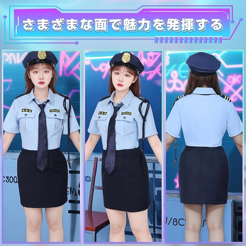 【新品】 [Formemory] ポリス コスプレ 警察 ハロウィン コスプレ 制服 コスチューム 衣装 パーティー 仮装ミニスカポリス ハロウィン cosplay レディース婦警 ミニスカート 文化祭 (ブルー, XL) 0