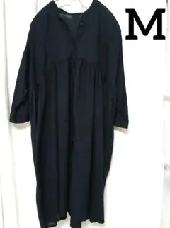 無印良品 Honeys 無地 ロング シャツワンピース ネイビー M