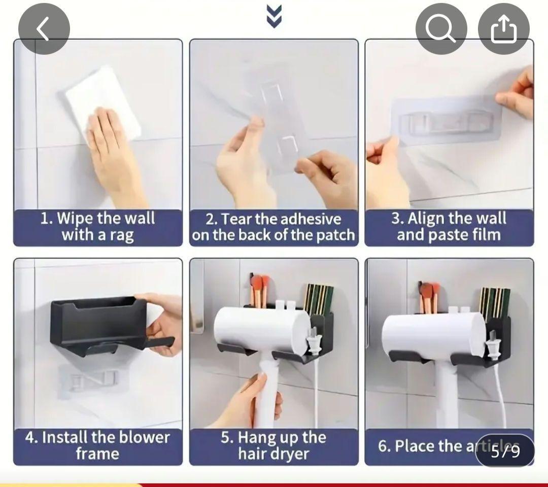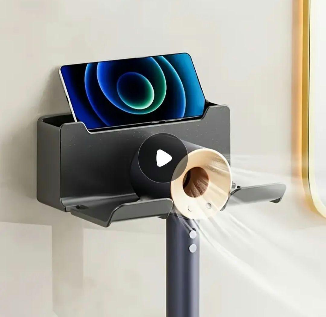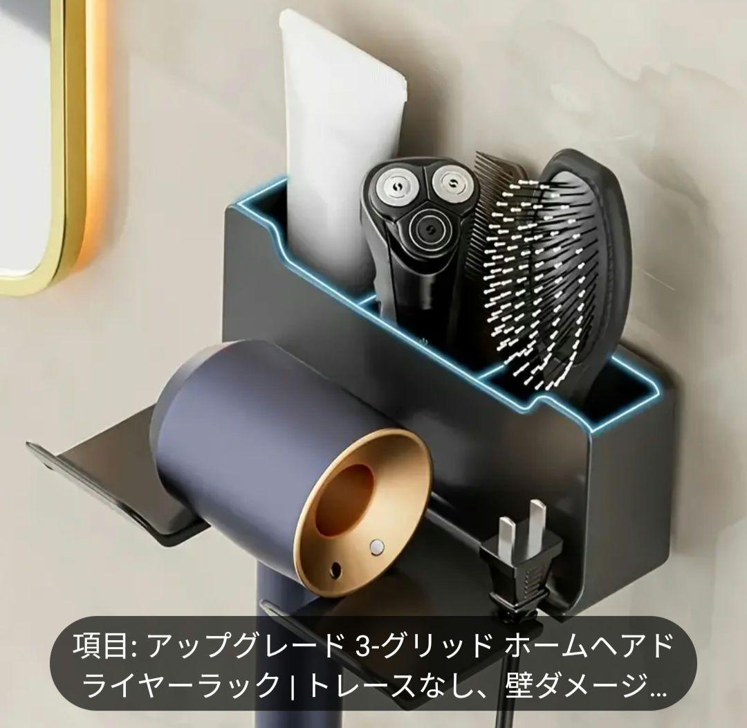 ドライヤーホルダー 壁掛け 小物収納 穴開け不要ブラック
