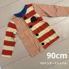 F.Oインターナショナル 赤と黄色のストライプ カーディガン 90cm