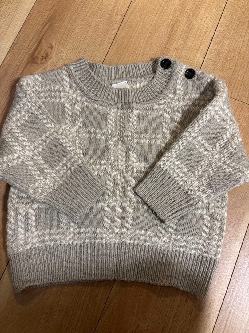 【tete a tete】グレー チェック柄 ニットセーター80㎝