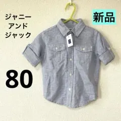 【新品】ジャニーアンドジャック 80サイズ ストライプ 長袖シャツ 半袖 ブルー