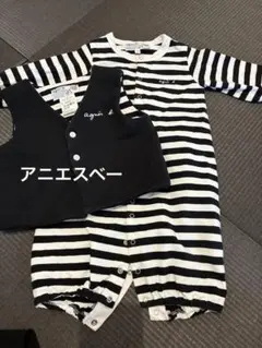 Agnes b. 黒白ストライプ ロンパースとベストセット 秋冬