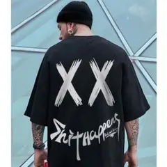 Tシャツ 綿100% オーバーサイズ ストリート バックプリント XL 黒