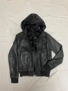 フード付きブラックレザージャケット