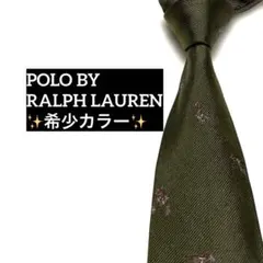 ポロラルフローレン ネクタイ モスグリーン カーキ 騎乗狩猟 刺繍