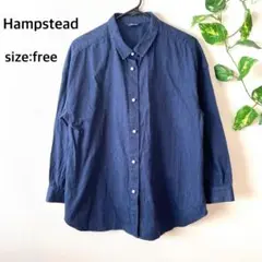 【ハムステッド】長袖シャツ パールボタン ネイビー インディゴブルー コットン