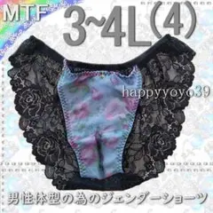 新品3~4Lブルー薔薇プリント 黒レース男性体型 ジェンダーフリーMTFショーツ