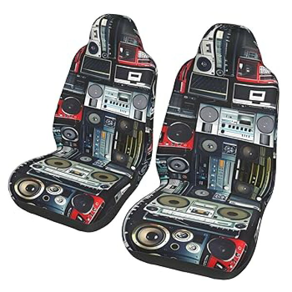 QQLADY ビンテージ ラジオ壁 ラジカセ カーシートカバー 車両シートプロテクター カーシートクッションカバー ユニバーサルフロントシート保護マットカバー ほとんどの車、セダン、トラック、SUV用