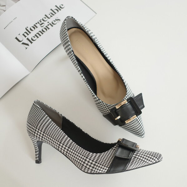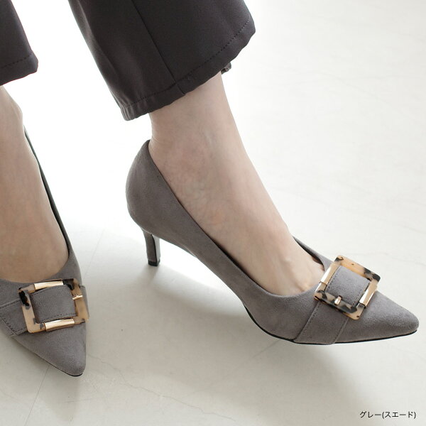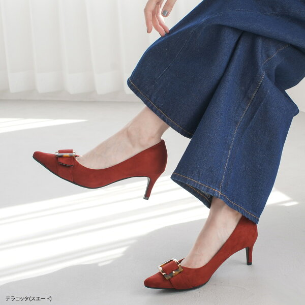 9日20時~30%offクーポン◆パンプス かかとクッション バックルポインテッドトゥパンプス 6センチヒール レディース 柔らか モチーフ付き ブラック ブラウン カーキ レッド 23.0 24.5 オフィス 結婚式 パーティ 滑らない 痛くない ルリアンプラス