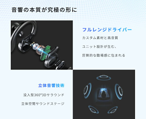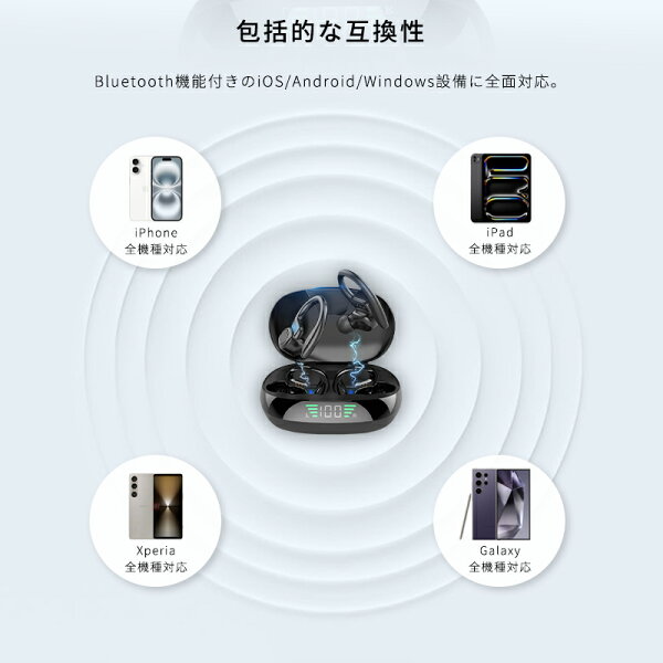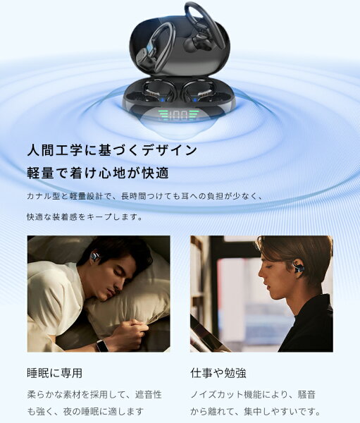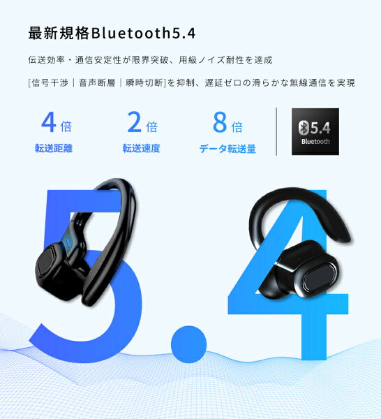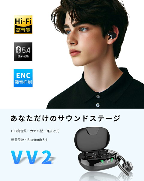 ワイヤレスイヤホン Bluetooth 5.4 カナル型 TWSヘッドセット 耳掛け式 落ちにくい 安定装着 スポーツ向け 自動ペアリング 瞬間接続 HiFi 高音質 ステレオサウンド マイク内蔵 ハンズフリー クリア ENCノイズキャンセリング【PL保険加入済み製品・安心】