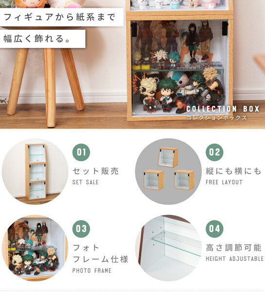 コレクションケース 3段 積み重ね 推し活 収納 棚 ラック ガラス おしゃれ スリム フィギュアケース クリアケース 透明 ボックス 縦長 コンパクト 小型 卓上 連結 扉付き グッズ アクリルスタンド ぬい 木製 ナチュラル ブラウン