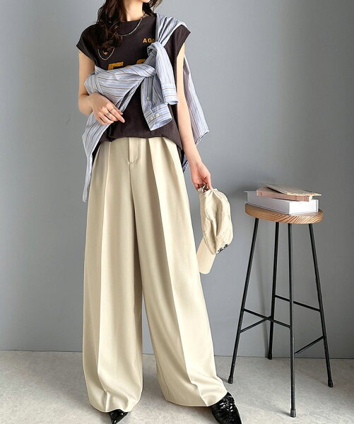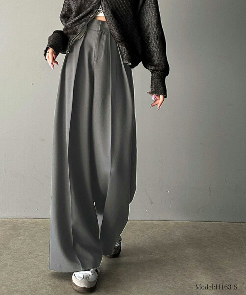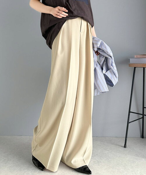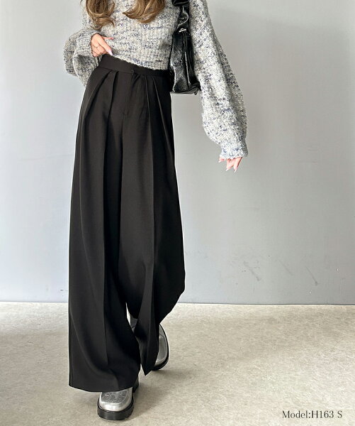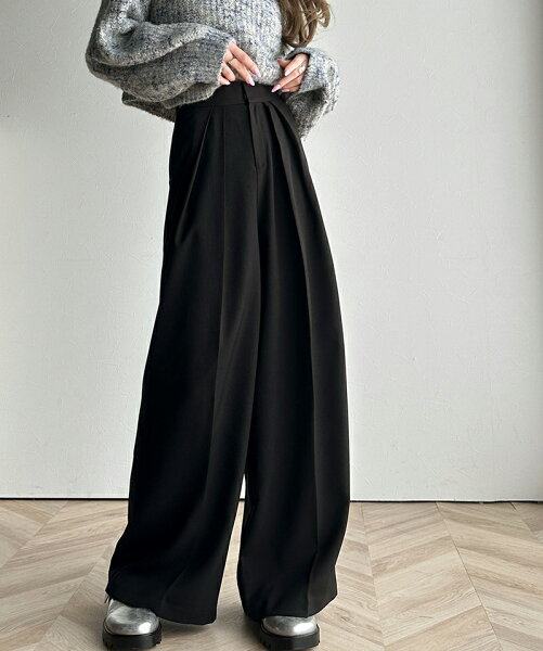 【 クラシカルエルフ classical elf 】 ボトムス パンツ レディース 細見え 2 イン タック ハイ ウエスト ワイド スラックス センタープレス ワイドシルエット 幅広 ベルト 高見え 美脚魅せ 大きいサイズ 秋 冬 クラシカルエルフ ce0940213