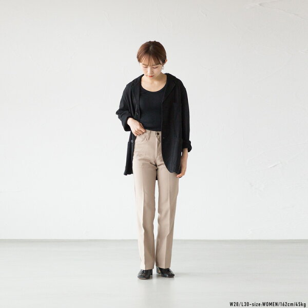 小さめサイズは女性にもおすすめ。ハイライズのタイトシルエット、センタープリーツで脚長効果も◎です。