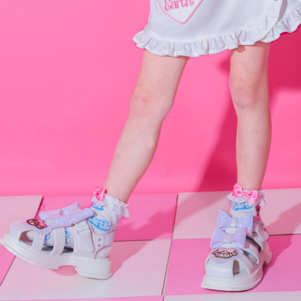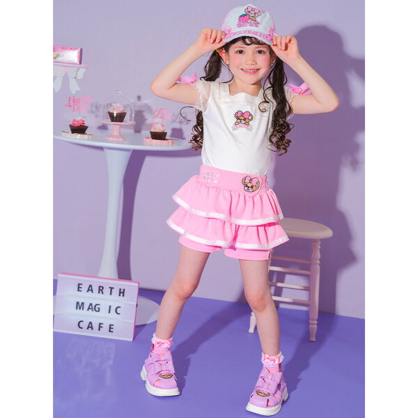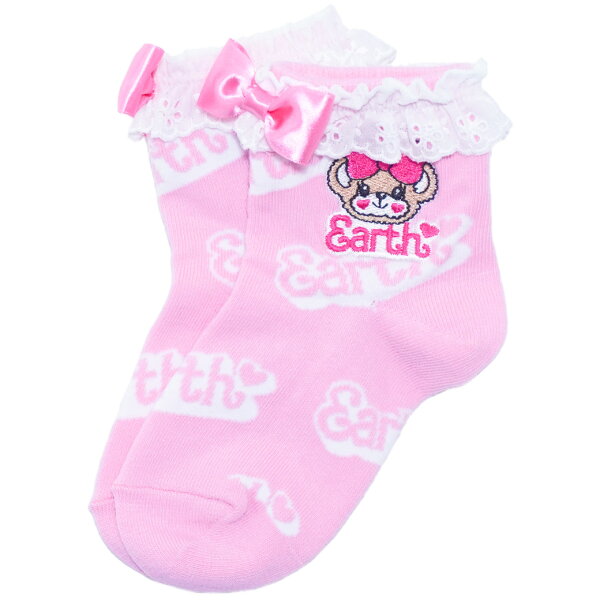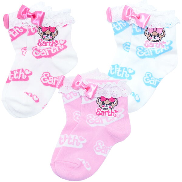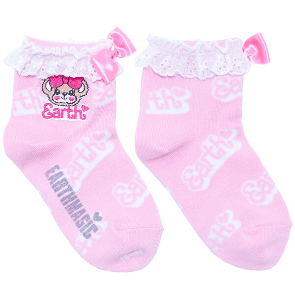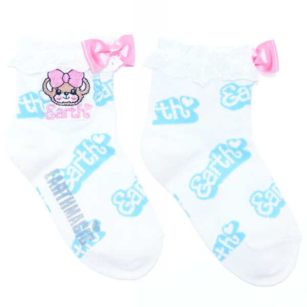 【EARTHMAGIC正規取扱店】アースマジック 日本製 ロゴ総柄ショートソックス マフィー 女児 女の子 子供服 キッズ 13-15 16-18 19-21 22-24cm 白 ホワイト 水色【50%OFF】