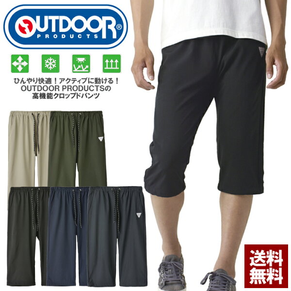 OUTDOOR PRODUCTS アウトドアプロダクツ クロップドパンツ メンズ リラックスフィット 2WAYストレッチ 接触冷感 UVカット ドライ ウエストゴム 紐付き イージーパンツ ブランド【B6Y】【パケ1】