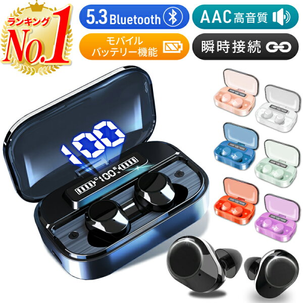 【楽天1位】【モバイルバッテリー機能搭載】ワイヤレスイヤホン bluetooth 5.3 イヤホン iphone 完全 ブルートゥース 小型 カナル型 iPhone15 Pro アイフォン ノイズキャンセリング ハンズフリー IPX7 防水 両耳 片耳 USB-C usb type-c 通勤 コスパ 送料無料 ホビナビ