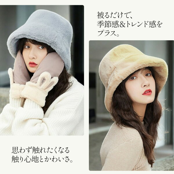 やみつき手触り|もこもこ&ふわふわ|秋冬のおしゃれに欠かせない|高見えするファーバケットハット