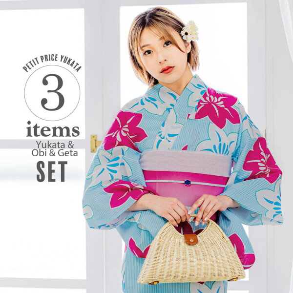 レディース 浴衣3点セット(浴衣+帯+おまかせ下駄)
