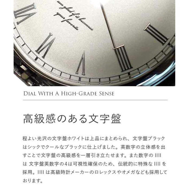 【 高級感のある文字盤 】文字盤ホワイトは上品な光沢と立体ローマ数字がさらに高級感を演出。