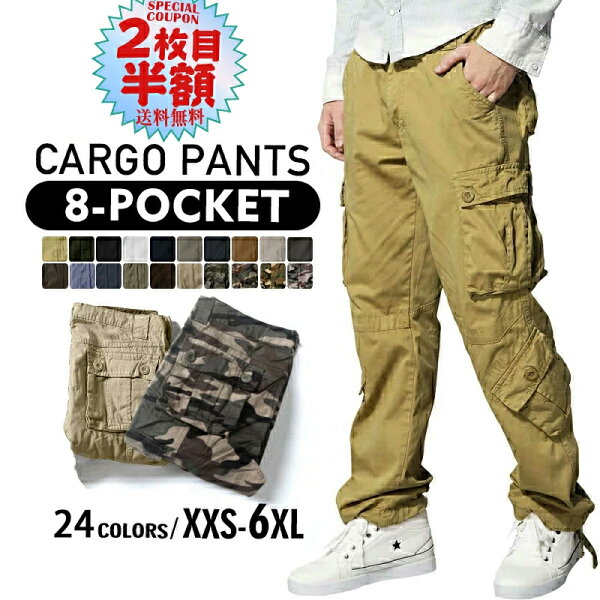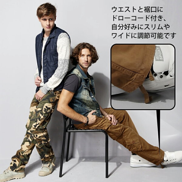 【2枚目半額】カーゴパンツ メンズ ズボン 大きいサイズ イージーパンツ 迷彩 作業着 ゆったり 厚手 丈夫 春秋冬 裾絞り パンツ 8ポケット 綿100% ミリタリーパンツ アウトドア ドロスト 無地 大容量ポケット ワークパンツ レディース 黒 送料無料 *一部予約中
