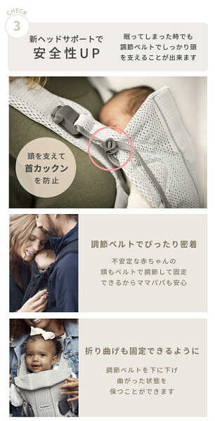 【新ラウンドデザインで密着抱っこ、新ヘッドサポートで首かっくんを防止】