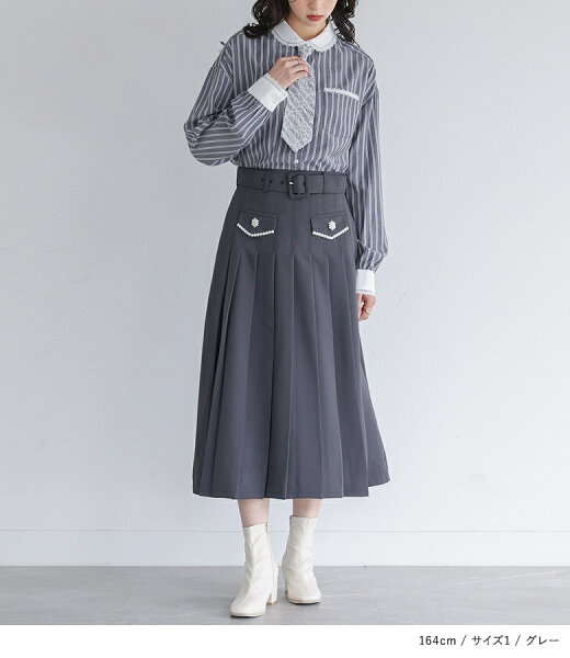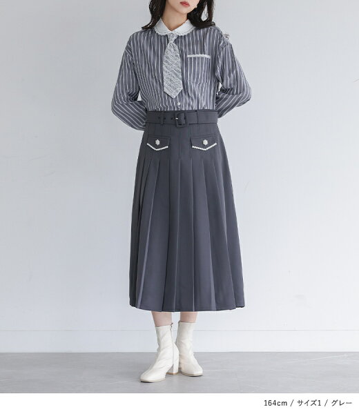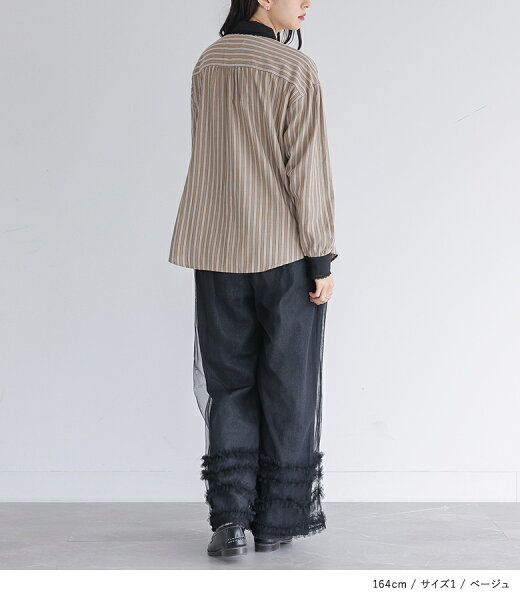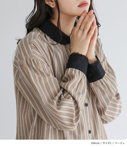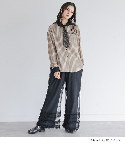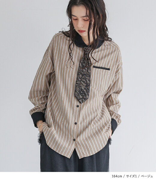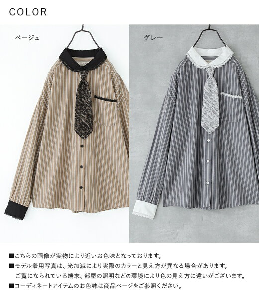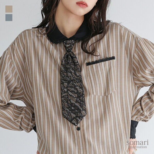 シャツ レディース トップス 長袖 ブラウス ストライプ柄 襟付き 丸襟 ネクタイ付き レース レイヤード 春 秋 冬 【TP】 ボタンシャツ 前開きシャツ 襟付きシャツ 柄シャツ オープンカラー ミディ丈 ミドル丈 ドロップショルダー 調節できる 調整可能 ベルト付き 総柄 配色 おうちで洗える ロングシーズン カジュアル レトロ クラシカル シンプル キレカジ フェミニン ガーリー 可愛い系 大人女子 大人可愛い お洒落可愛い 大人カジュアル 上品 きれいめ ベーシック Sサイズ Mサイズ Lサイズ LLサイズ 3Lサイズ XLサイズ ぽっちゃり 体型カバー 大きいサイズ プラスサイズ 10代 20代 30代 40代 50代 60代 女子会 通学 お買い物 お出掛け 旅行 リゾート おしゃれ お洒落 トレンド 流行 ママ 母 母親 somari imagination ソマリイマジネーション ナチュラル osharewalker オシャレウォーカー おしゃれうぉーかー ベージュ グレー 灰色[ID]13to07p[somari imaginationネクタイ付きストライプシャツ]