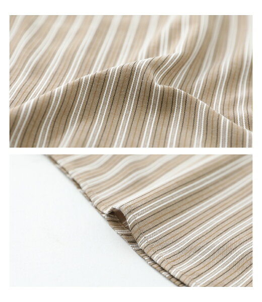 多色使いでお洒落な印象が叶うストライプ柄のシャツ生地を使用。程よい厚みで柔らかく、快適な着心地です。季節の変わり目にはもちろん、カーディガンやジャケットのインナーとしても重宝します。