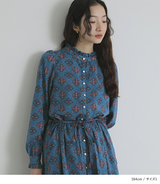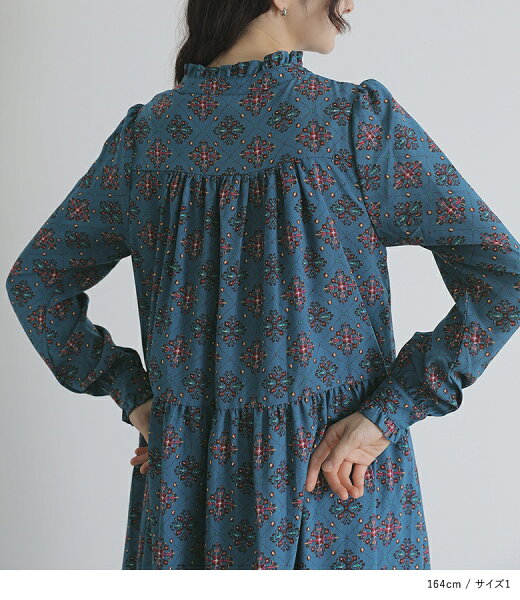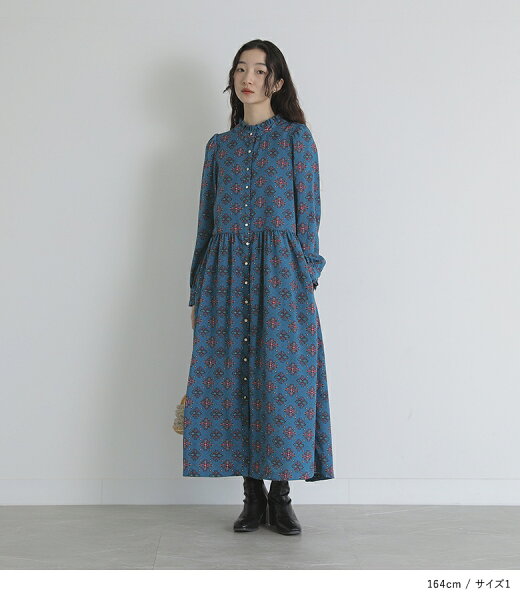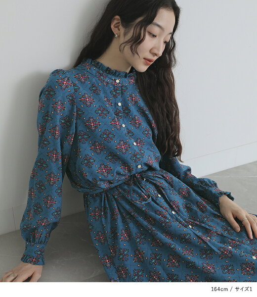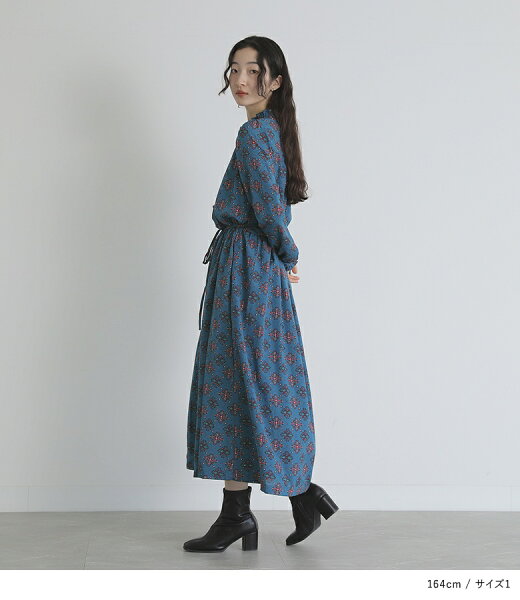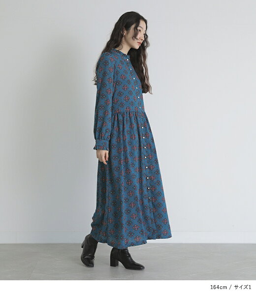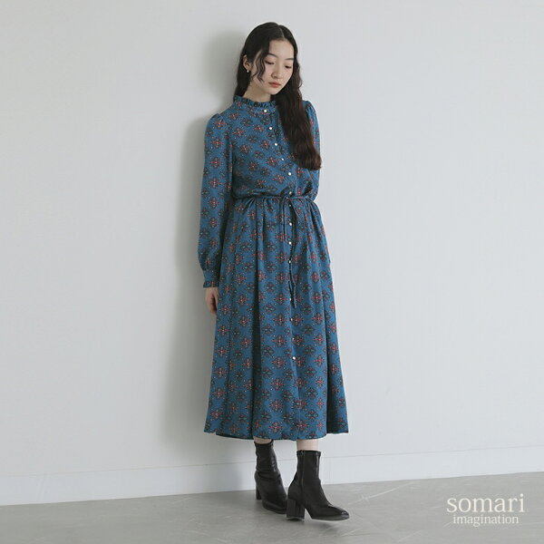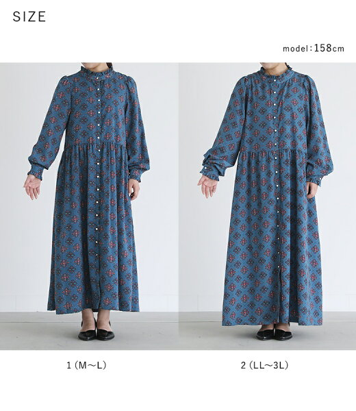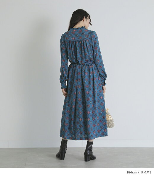 【ほぼ全品10%OFF 1/5 17:59迄】ワンピース ロングワンピース 長袖ワンピース レディース 長袖 ロング丈 マキシ丈 春 秋 冬 ロングシーズン フリル スタンドカラー ウエストリボン きれいめ 上品 レトロ ゆったり 大きいサイズ 体型カバー 【メール便不可】【20】
