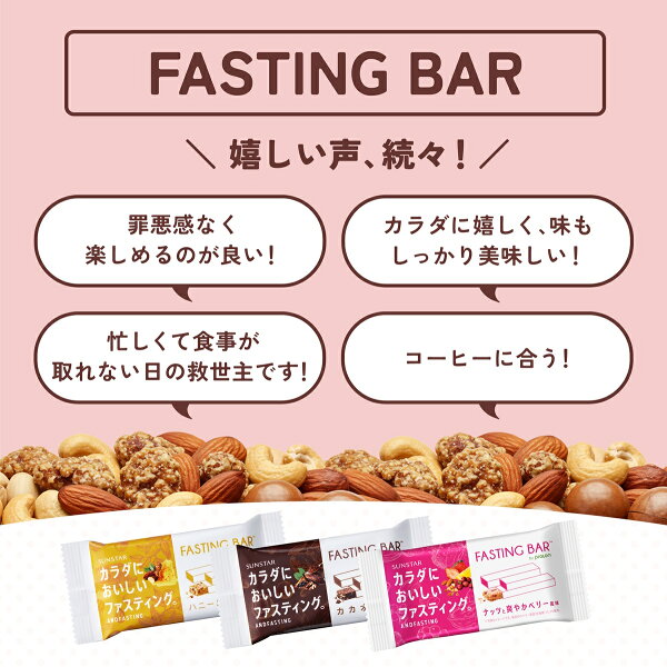 [ファスティングバー]12日分 カラダにおいしいファスティング 3種12本 (カカオ・ハニー・ベリー) ファスティング 食べるファスティング 置き換えダイエット グルテンフリー 食物繊維 おやつ 低糖質 お菓子 低カロリー おやつ