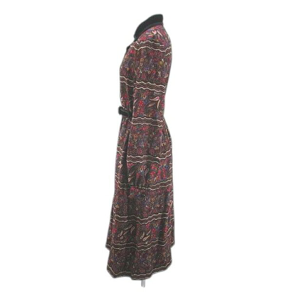 【中古】DAIMARU FASHION ROOM レトロ ペイズリー柄 長袖 ミモレ丈 フレアワンピース ワンピース ボルドー系 ワインレッド 毛 ウール 裏地 ヴィンテージ レディース 【ベクトル 古着】 251228